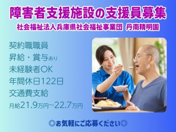丹波篠山市の障害者支援施設で支援員|月給21.9万円~22...