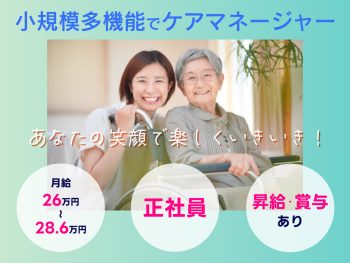 神崎郡の小規模多機能でケアマネージャー|月給26万円~28...