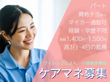 神崎郡の小規模多機能でケアマネージャー|時給1,400円~...