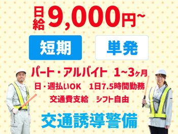 姫路市内の通信工事や道路工事の現場で交通警備して...給与 日給 9,000円〜12,000円 交通 勤務時間 【勤務時間】