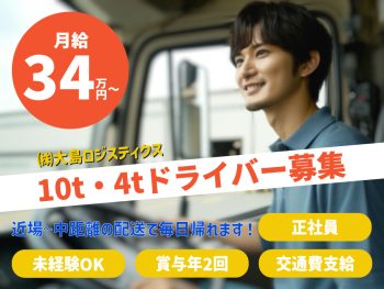 4t・10tのドライバーを大募集...給与 月給 340,000円 交通 最寄駅