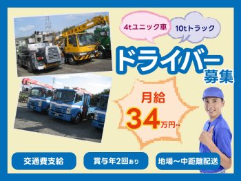 中型免許しかない方で...給与 月給 340,000円〜380,000円 交通 最寄駅