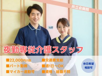 病院内にて夜勤専従の介護業務を行って頂きます。