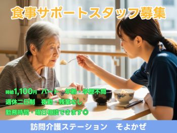 訪問介護ステーションそよかぜにて食事サ...給与 時給 1,200円 交通 阪神 甲子園駅から徒歩10分 勤務時間 【勤務時間】