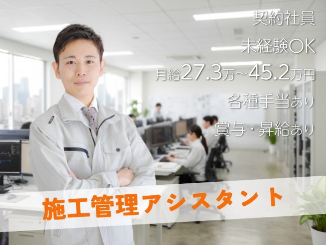 ≪姫路市×管理アシスタント≫【契約社員】未経験者活躍中☆月給27.3万~45.2万円/週休2日制/各種手当あり/設計・施工管理アシスタント作業!