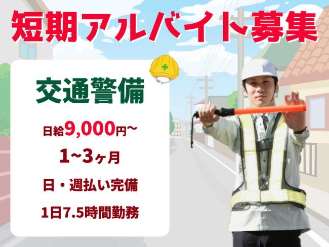 | 職種 | 1日7.5時間勤務!亀山駅周辺で1~3ヶ月の短期単発交通警備員 |