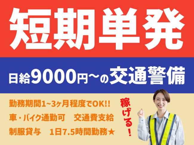| 職種 | 土日祝休み!白浜の宮駅周辺で1~3ヶ月の短期単発交通警備員 |