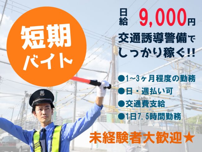 flag八家駅周辺で1~3ヶ月の交通警備員/短期・単発アルバイト/未経験でも日給9000円~/ネイル・ピアスOK≪姫路市内≫★