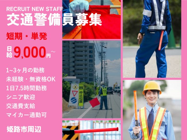 | 職種 | 65歳以上OK!英賀保駅周辺で1~3ヶ月の短期単発交通警備員 |