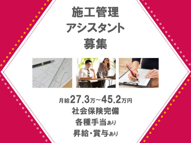 ≪姫路市×管理アシスタント≫【契約社員】未経験者活躍中☆月給27.3万~45.2万円/土日祝休み/手当充実/資格取得支援制度あり/設計・施工管理アシスタント作業