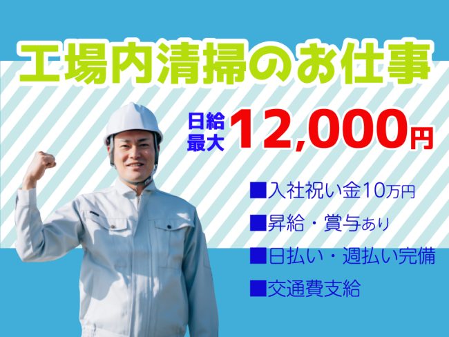 | 職種 | 経験・資格不問!飾磨駅周辺の工場で構内清掃作業 |