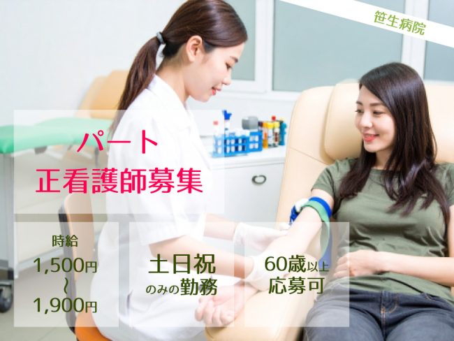 西宮市の病院で正看護師|時給1,500円~1,900円|土日祝日勤パート|年齢不問|シニアも活躍できる|交通費支給|週1日~2日の勤務
