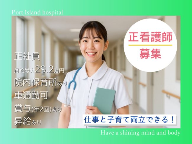 | 職種 | 無料託児所あり!神戸市ポートアイランド病院で正看護師 |