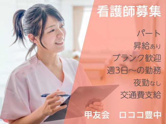 | 職種 | 夜勤なし!豊中市の特別養護老人ホームでパートの看護師業務 |