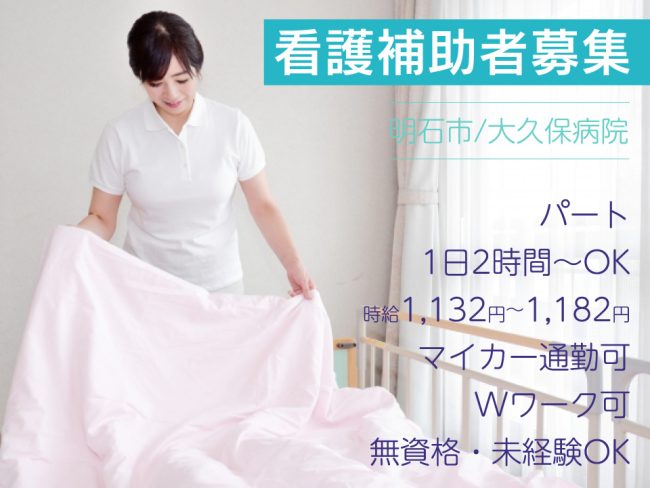 | 職種 | 1日2時間~でOK!明石市の病院で看護補助パート |