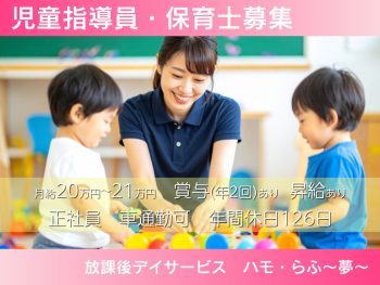 放課後デイサービスで児童指導員、保育...給与 時給 1,116円〜1,350円 交通 JR明石駅から車12分